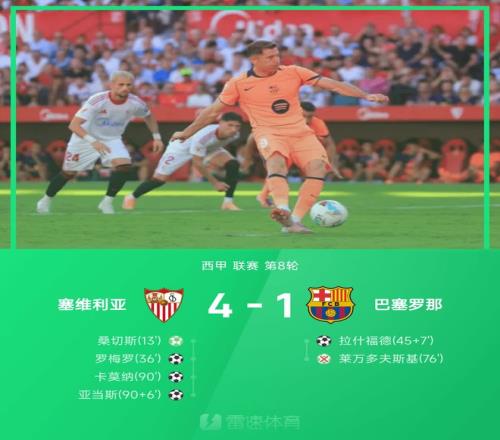 雷速体育10月6日宣 在北京时间今日凌晨进行的西甲比赛中,巴塞罗那客场1-4惨败于塞维利亚,遭遇本赛季最惨痛的失利之一。令人唏嘘的是,这场比赛的走势竟与几天前曼联1-3不敌布伦特福德的英超战役惊人相似,仿佛是同一剧本的翻版。