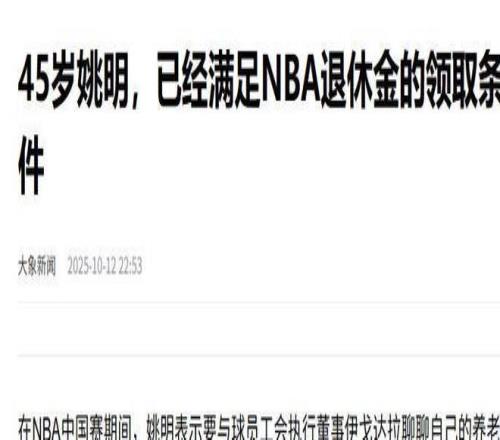 大象新闻:(45岁姚明,已经满足NBA退休金的领取条件2025.10.12)