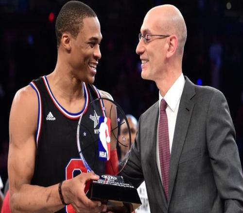 威少生涯至今,共9次入选全明星,其中2次成为首发球员。尽管入选的次数和首发都不及其他球员,但威少还是把握机会,连续两届(2014—15、2015—16赛季)都拿到MVP,成为NBA历史第一人。