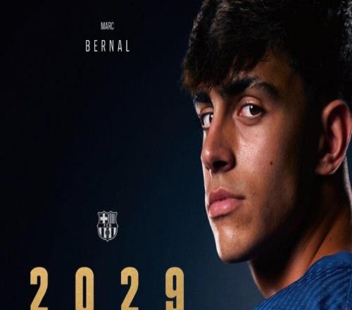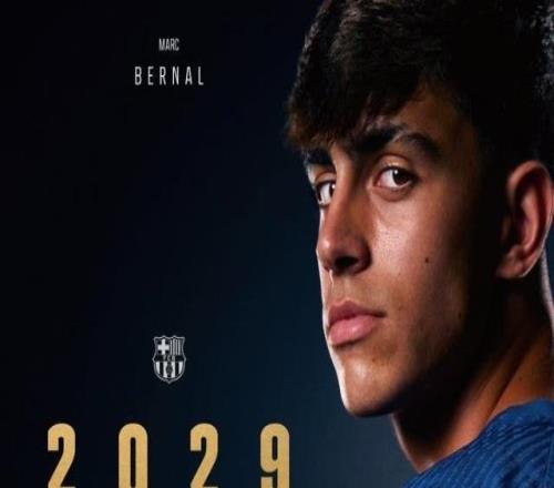 官方:巴萨与18岁中场小将伯纳尔续约至2029年